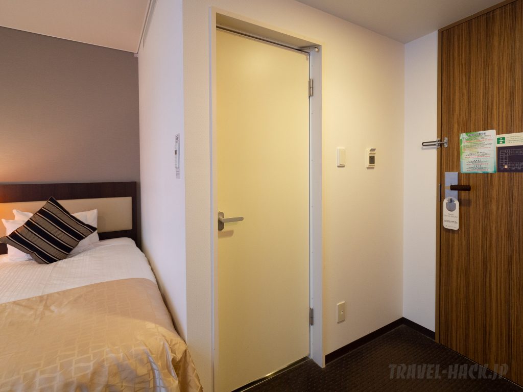 廊下にあたる部分がないような客室なのでその分広く部屋を使えます。スーツケースを広げるスペースも確保できます。(19㎡の客室だとスーツケースを開けるのが困難なホテルもあります)