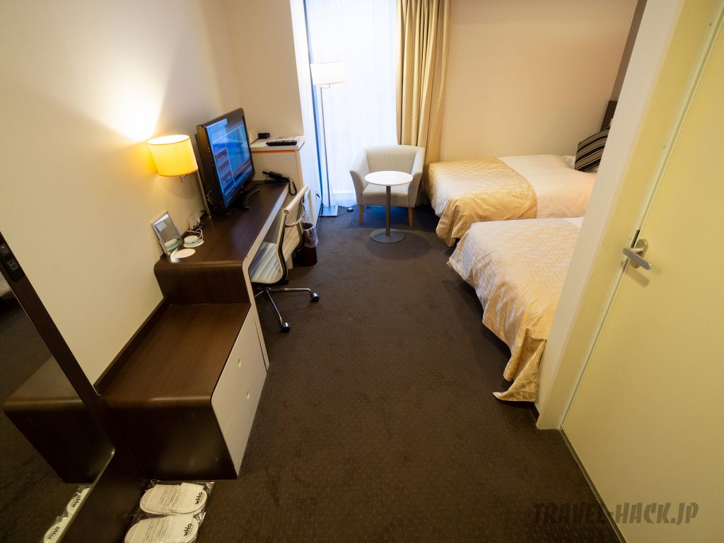 ただ寝るだけのホテルとしては十分だと思いますが、やはり19㎡しかないので2人で寛ぐには少し狭いかなという印象があります。