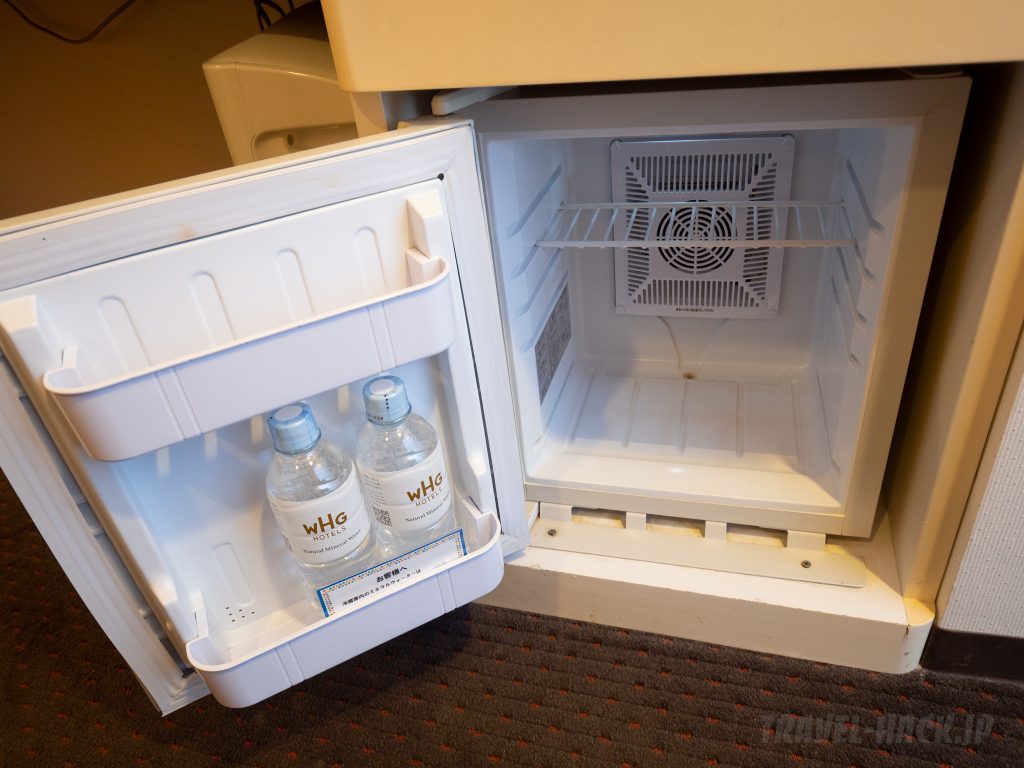 冷蔵庫の中には、無料のミネラルウォーターが2本ありました。