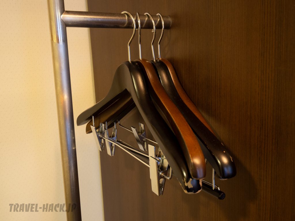 クローゼットと呼ぶようなものはなく、部屋の入り口横にハンガーラックがあります。