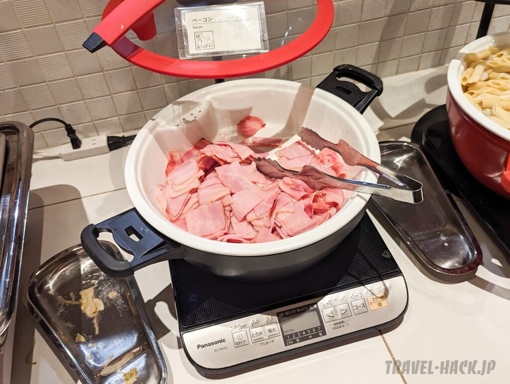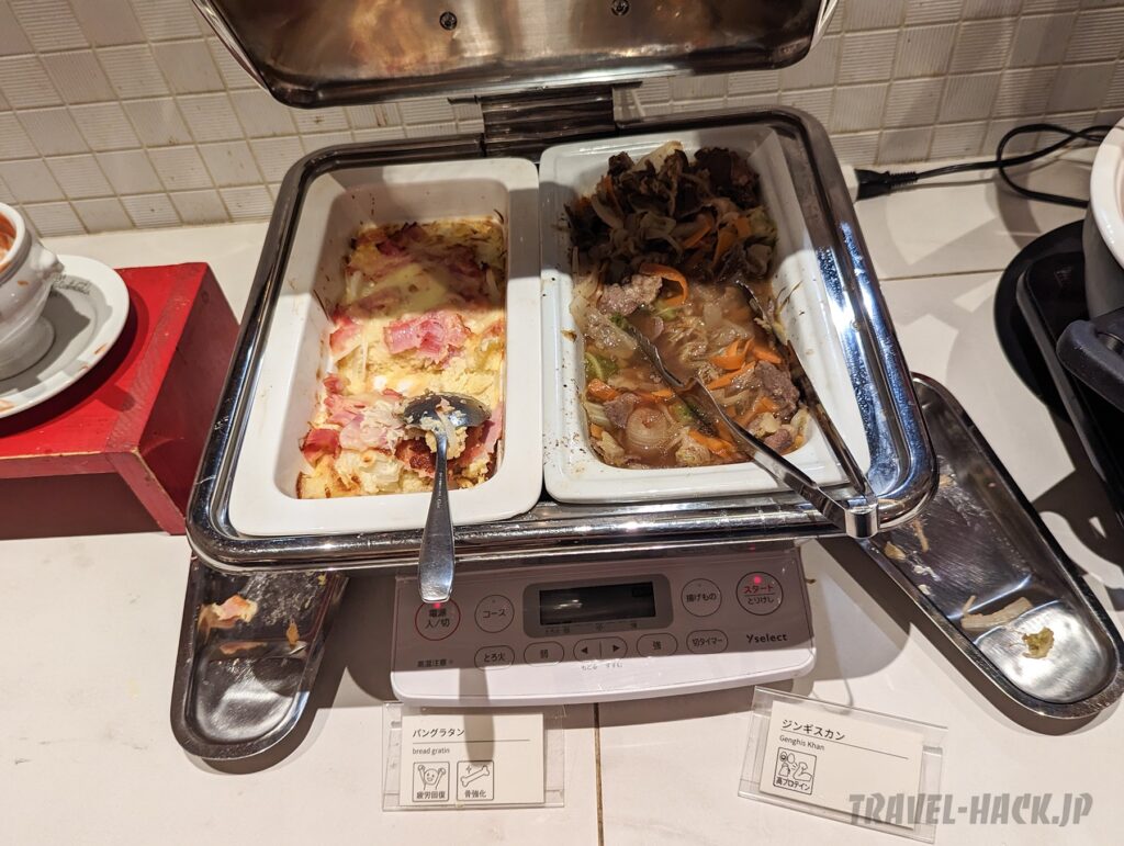 味のクオリティは全体的に普通のビジホレベルで、特別美味しいとか不味いとかない感じでした。ラインアップも普通のビジネスホテルと変わりない感じで特別秀でているものは特にありませんでした。