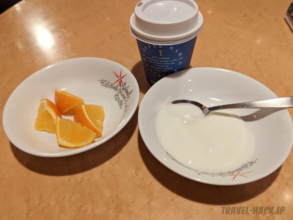 デザートやフルーツも少なく、フルーツ1種類とヨーグルトだけでした。