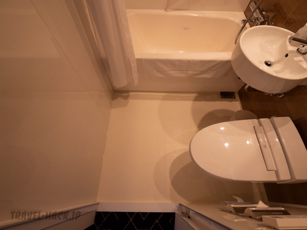 ウェットエリアは「1.8m x 1.4m」の広さ。ビジネスホテルの標準的な大きさです。