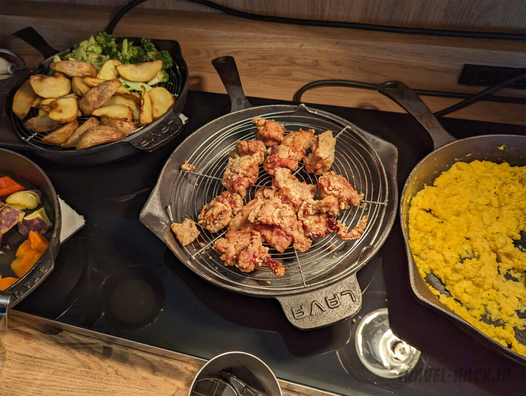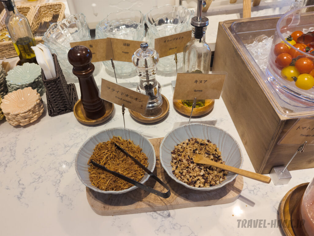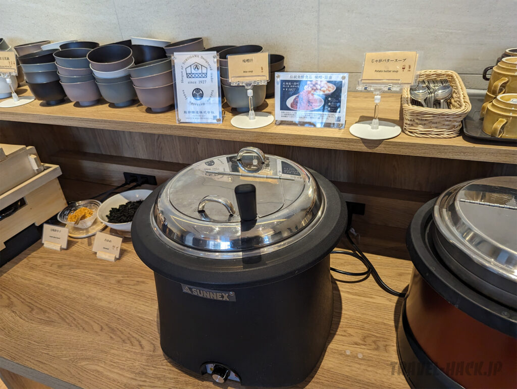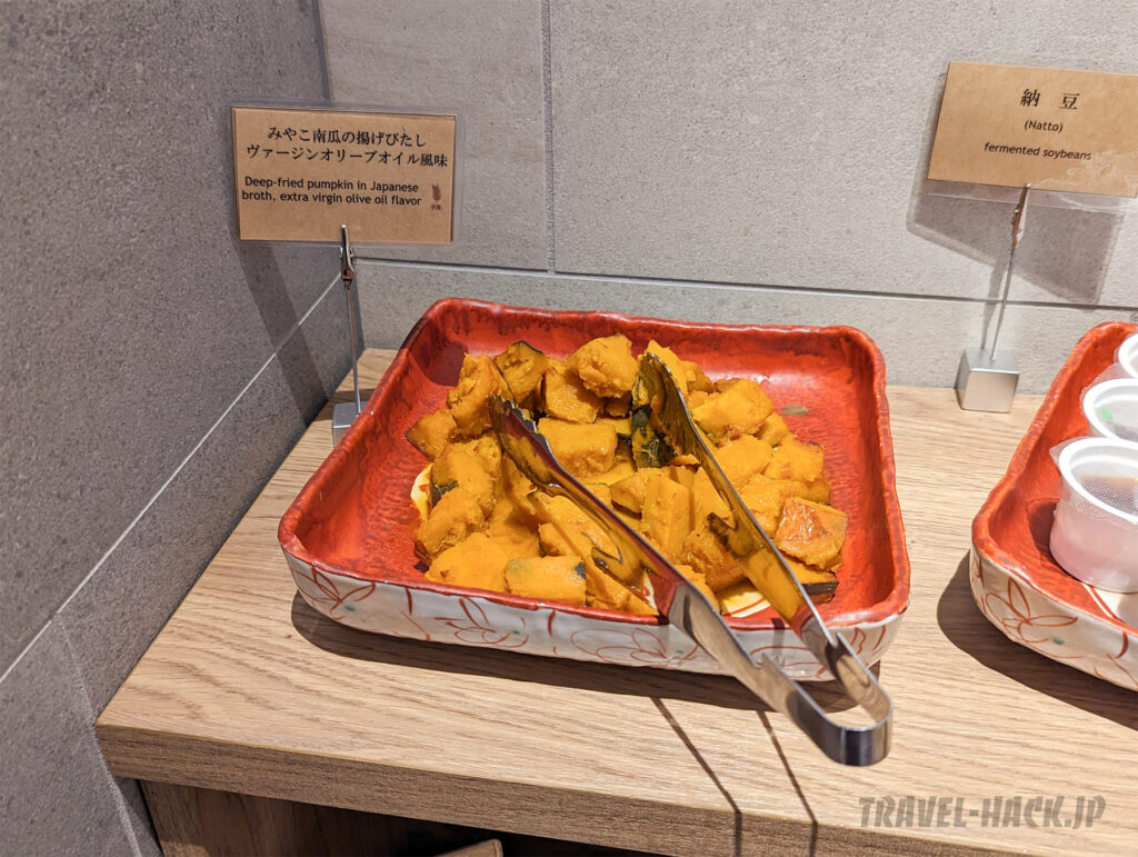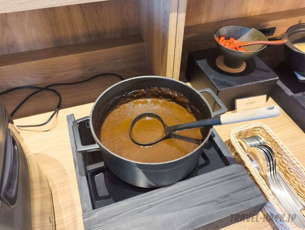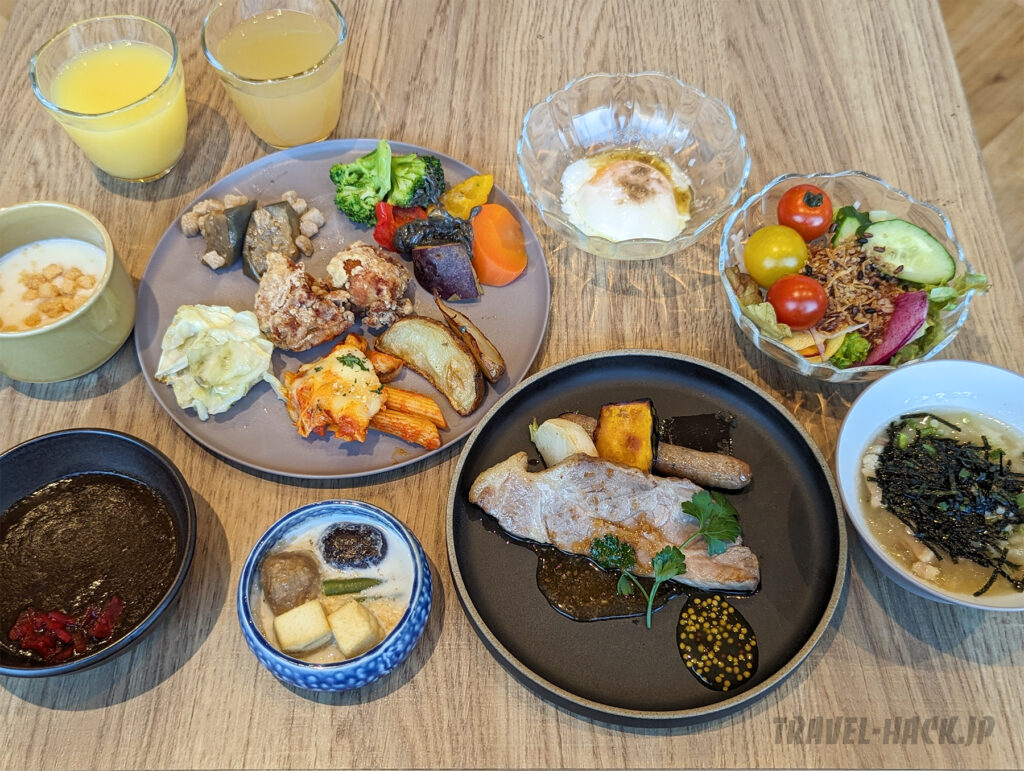 目玉は、 肉か魚を選ぶ形となっており、朝食ビュッフェとしては特別感があります。その他の料理も全体的に美味しく、クオリティは高め。普通の宿泊特化型ホテル(ビジネスホテル)にありがちな業務用惣菜などは見受けられませんでした。