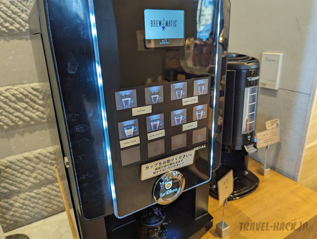 コーヒーマシンは、コーヒー、アメリカン、カフェラテ、カフェモカ、ココアがあります。