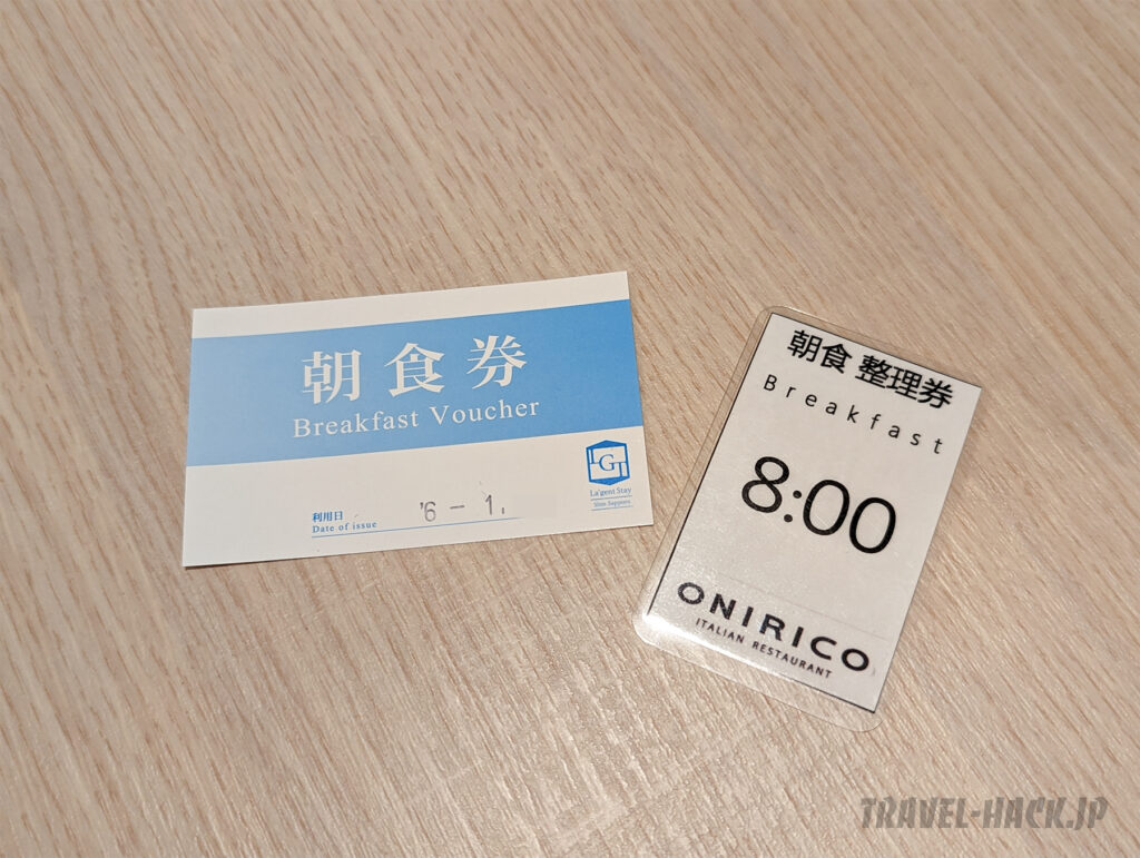 朝食は朝食券タイプですが、チェックイン時に朝食時間帯を聞かれて(30分刻み)、整理券を貰います。必ずしもその時間帯に行かなければならないというわけではないとのことですが、混雑を緩和するためにこのようなシステムになっている模様です。