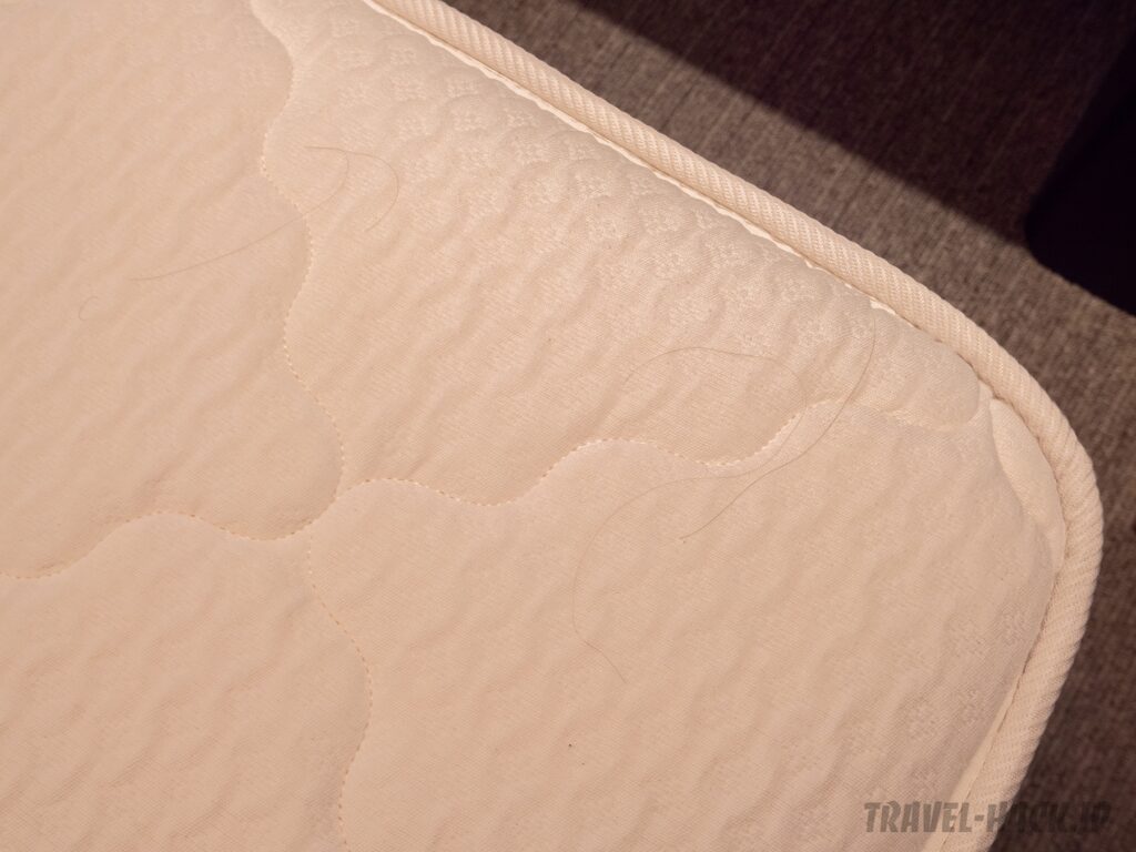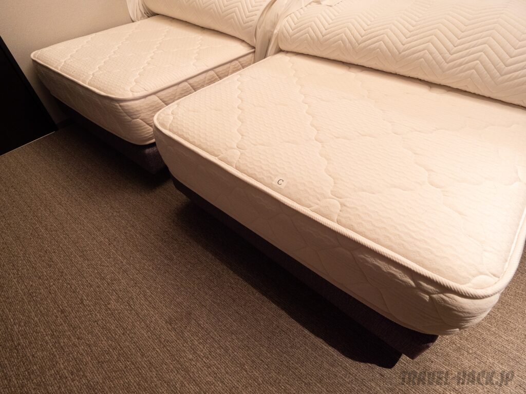 ベッドのマットレスはどのメーカーかは不明でした(見た感じは日本ベッドと思われます)。ピロートップはないですが、寝心地は悪くなく、ぐっすりと眠れました。