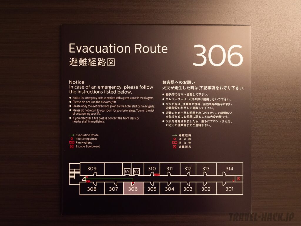 今回宿泊したのは306号室で、エレベーター前の客室でした。騒がしいかなと思いましたが、それほど騒ぐような客がいなかったため、思った以上に静かでした(ただ、話していると話し声は聞こえます)。