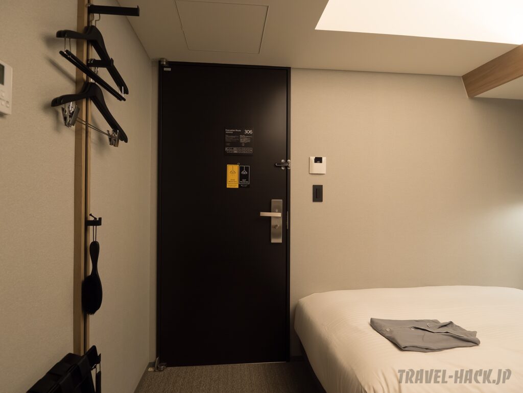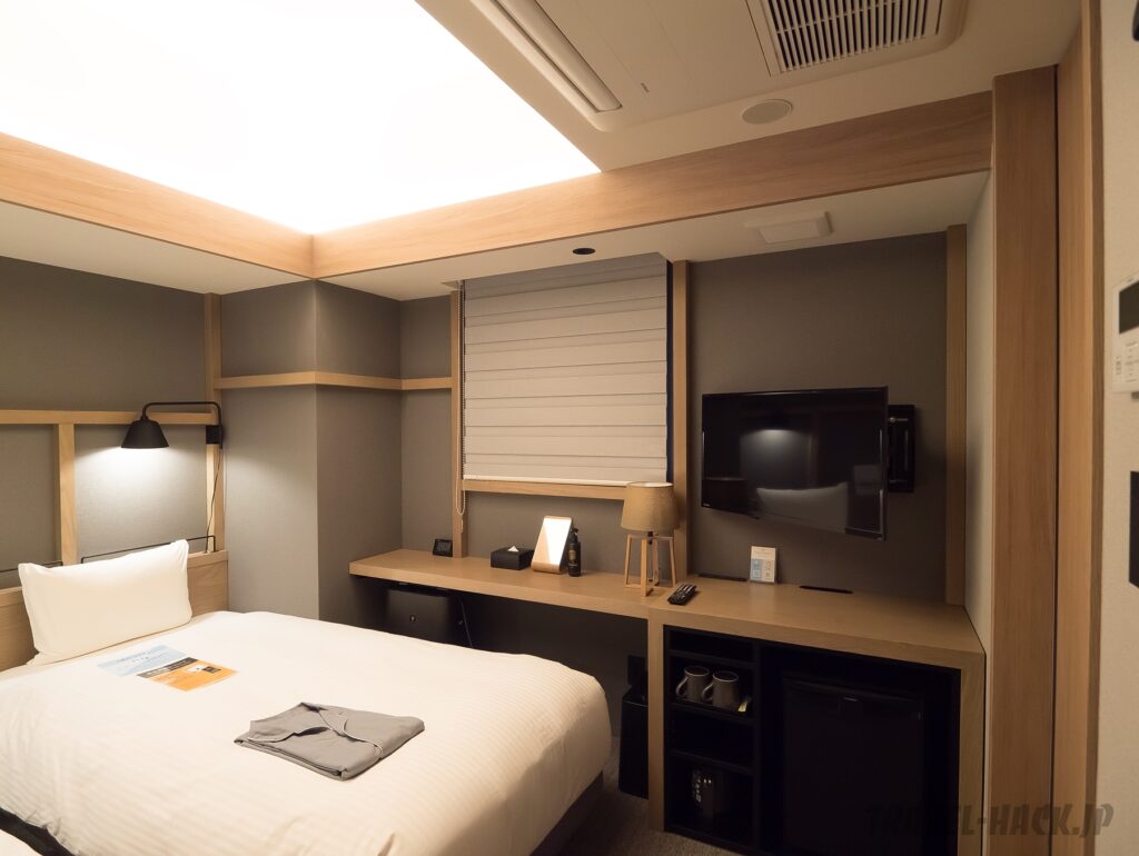 ただ、やはり15㎡で洗い場付きバスルームがあるためか、ベッドがあるメインエリアは必要最低限レベルの広さ。シングルユースでただ寝るだけの部屋としては良いかもしれませんが、2人での宿泊だと狭すぎると思います。