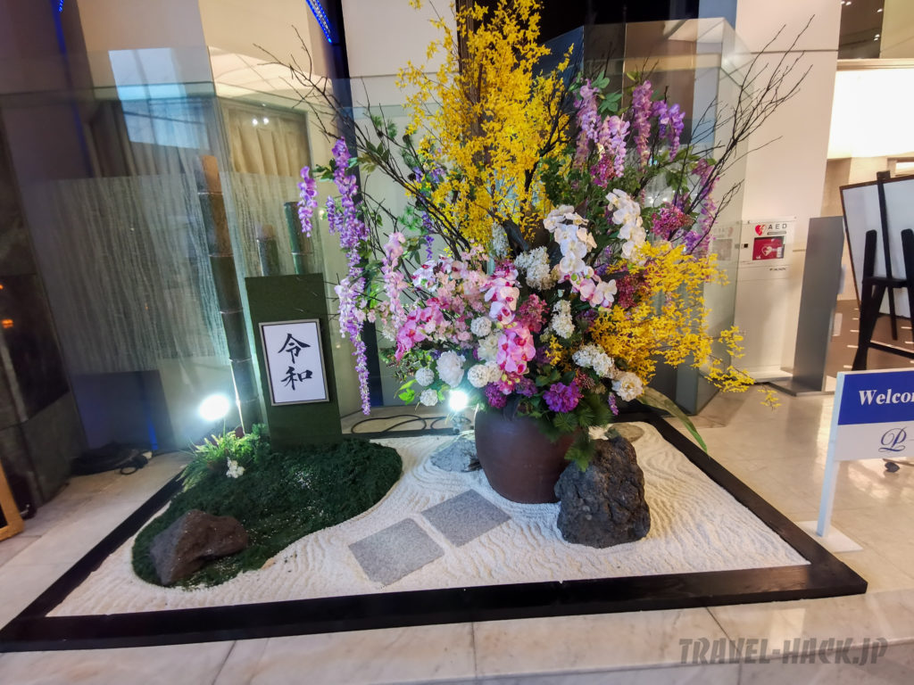 ロビーには時々では花やフォトスポットなどが展示されています。シティホテルだなと感じさせますね。