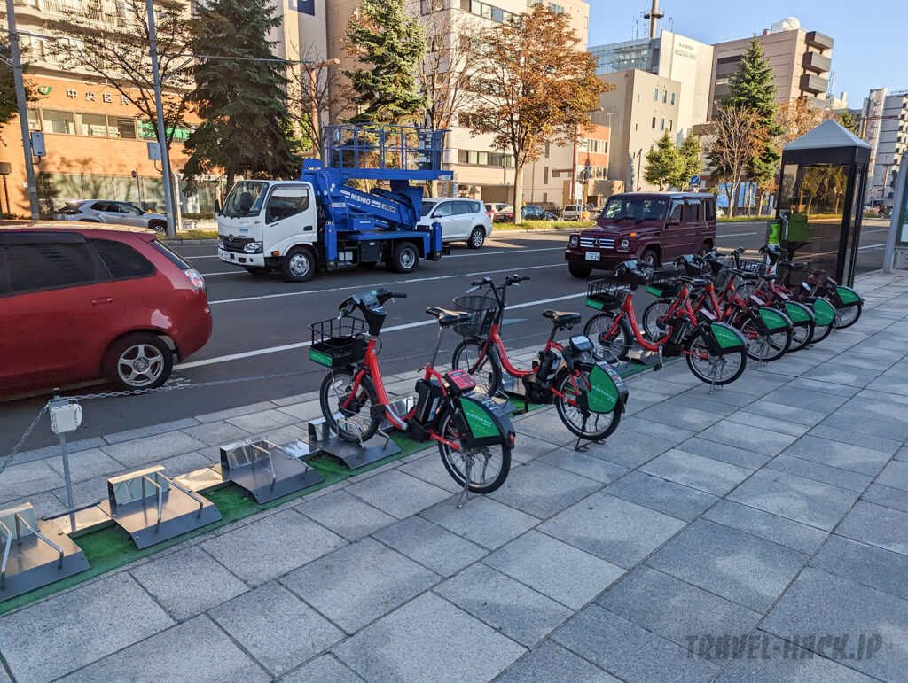 札幌にはシェアバイクの「ポロクル」というのものがありますが、このポロクルポートがホテル前にあります。