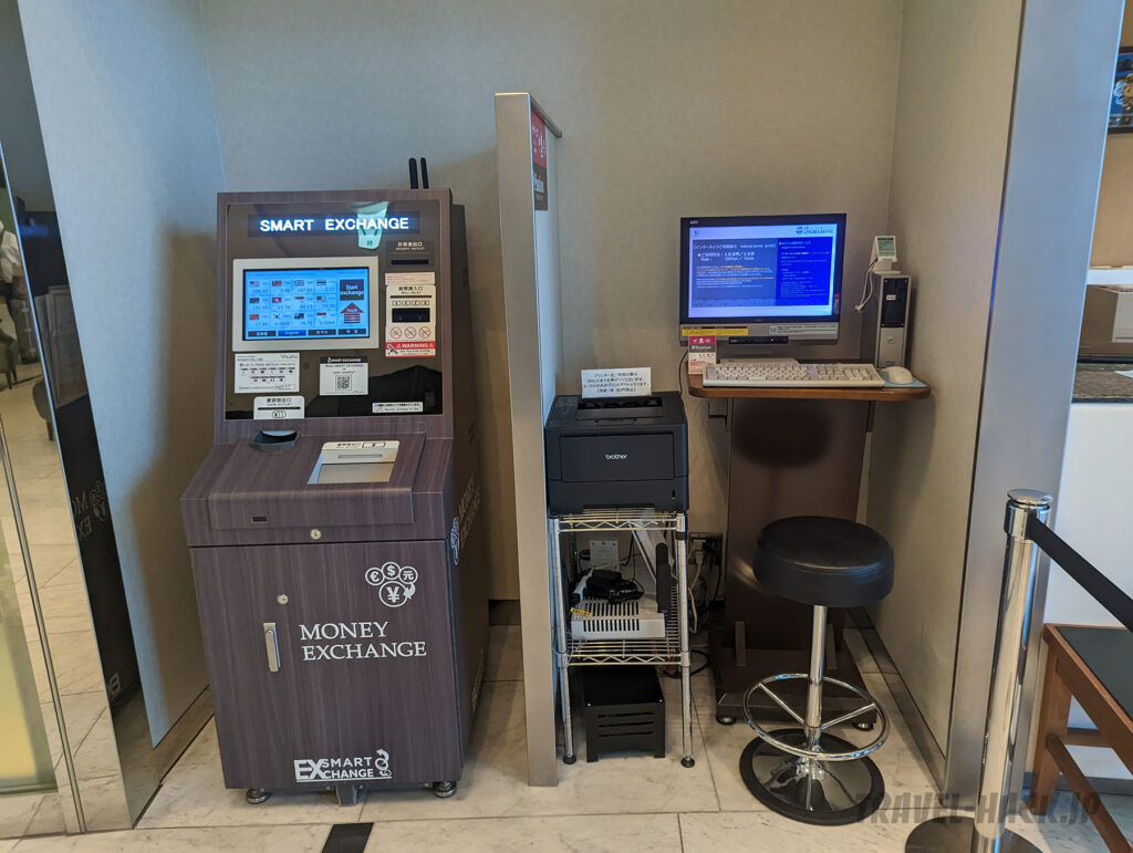 フロント横に有料で利用できるPCとプリンタが置いてありました。