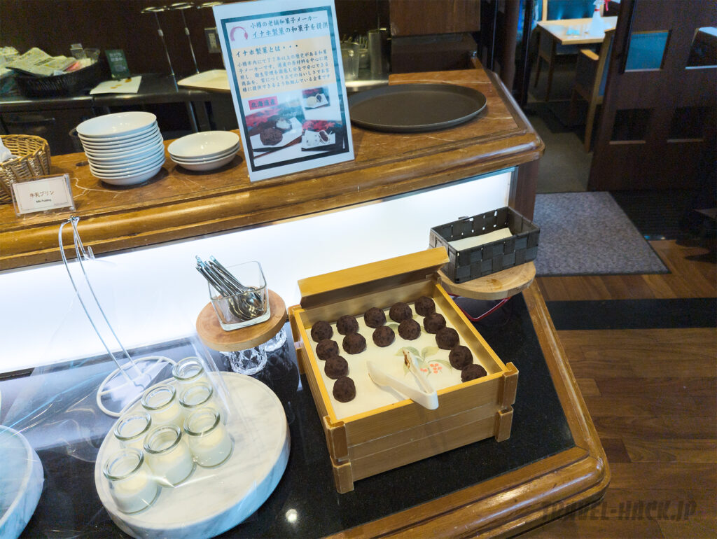 SAPPORO STREAM HOTELの朝食でも同時期にイナホ製菓のおはぎがありました。仕入れは東急ホテルズで一括でやってるのかな?