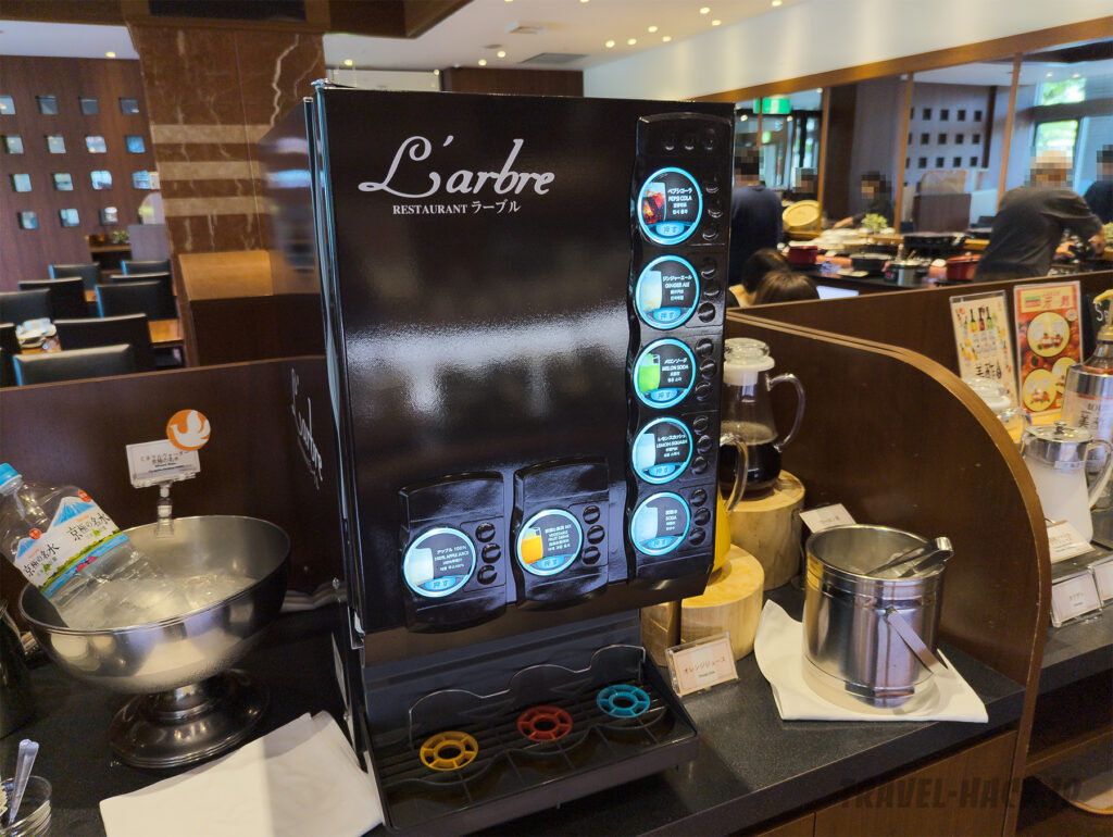 ソフトドリンクマシンはサントリー系?でペプシコーラやジンジャエールなどの炭酸やアップルジュースなどがラインナップされていました。
