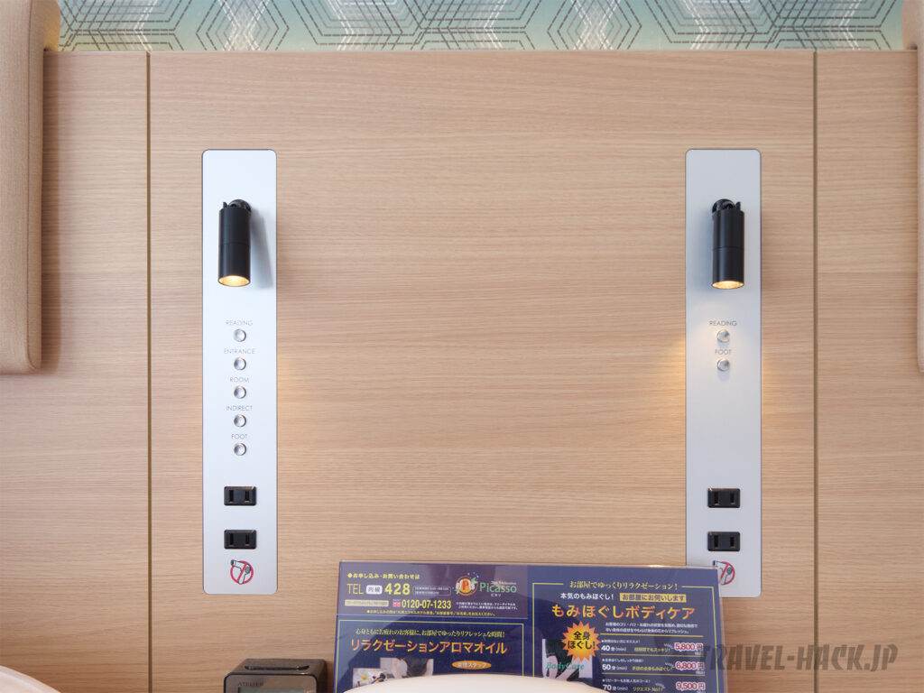 コンセントは1ベッドに対して2口あり必要十分です。
