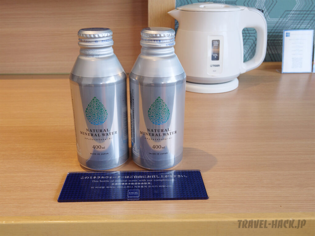 ミネラルウォーターの提供があります。