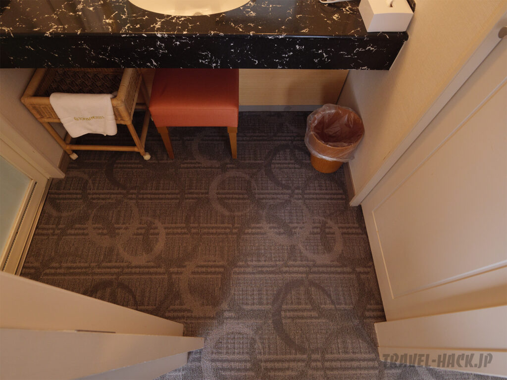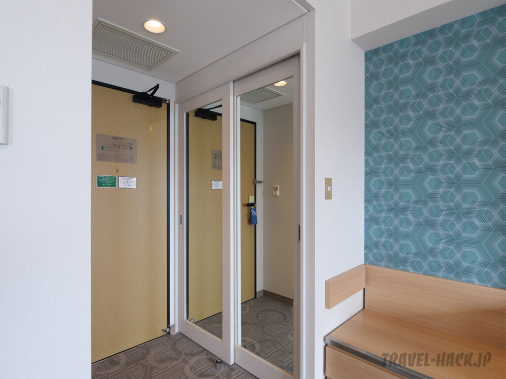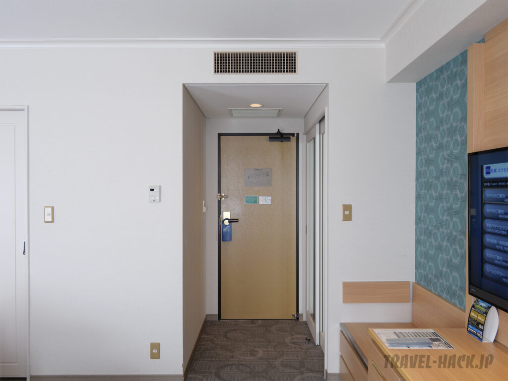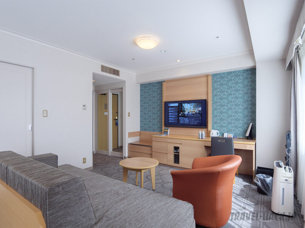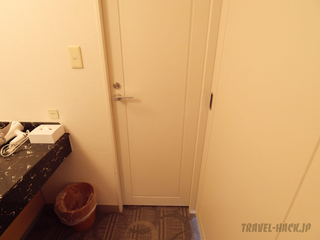 部屋は高級感はなく普通の宿泊特化型ホテルと何ら変わりない印象の内装でしたが、ベッドやソファがあるメインエリアは思った以上にきれいな印象でした。