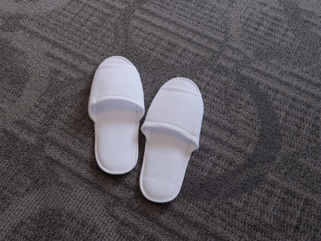 スリッパは使い捨てタイプを採用。どこにでもあるビジホのスリッパと変わらない品質のものでした。