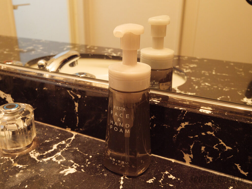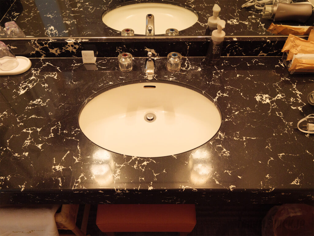 ウェットエリアの扉を開けると、洗面台がありますが、このスペースは思った以上に必要最低限レベルの広さしかないかなという印象でした。