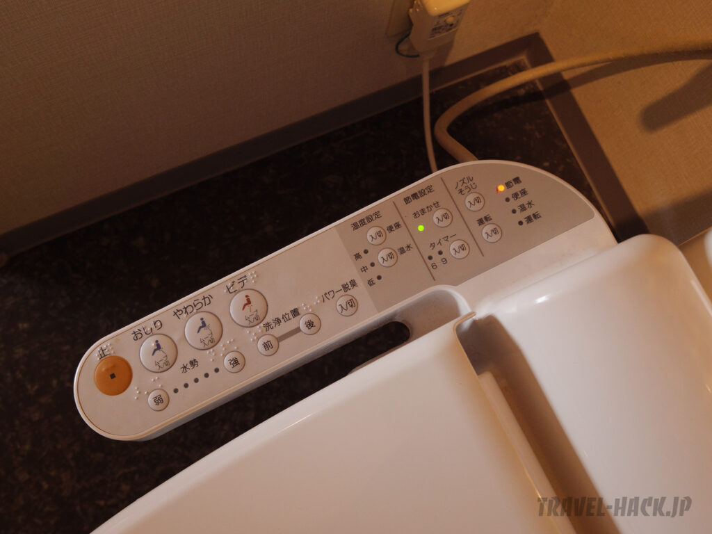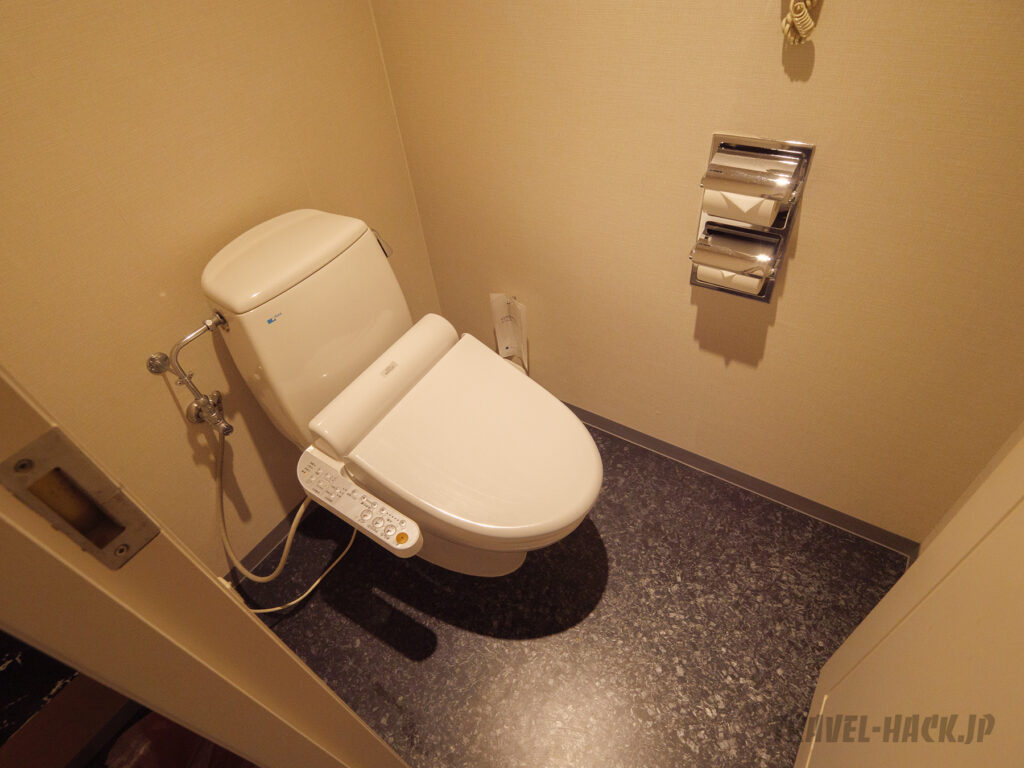 トイレは個室タイプです。ウォッシュレット(シャワートイレ)付きで暖房便座機能あり。トイレットペーパーはシングルでした。
