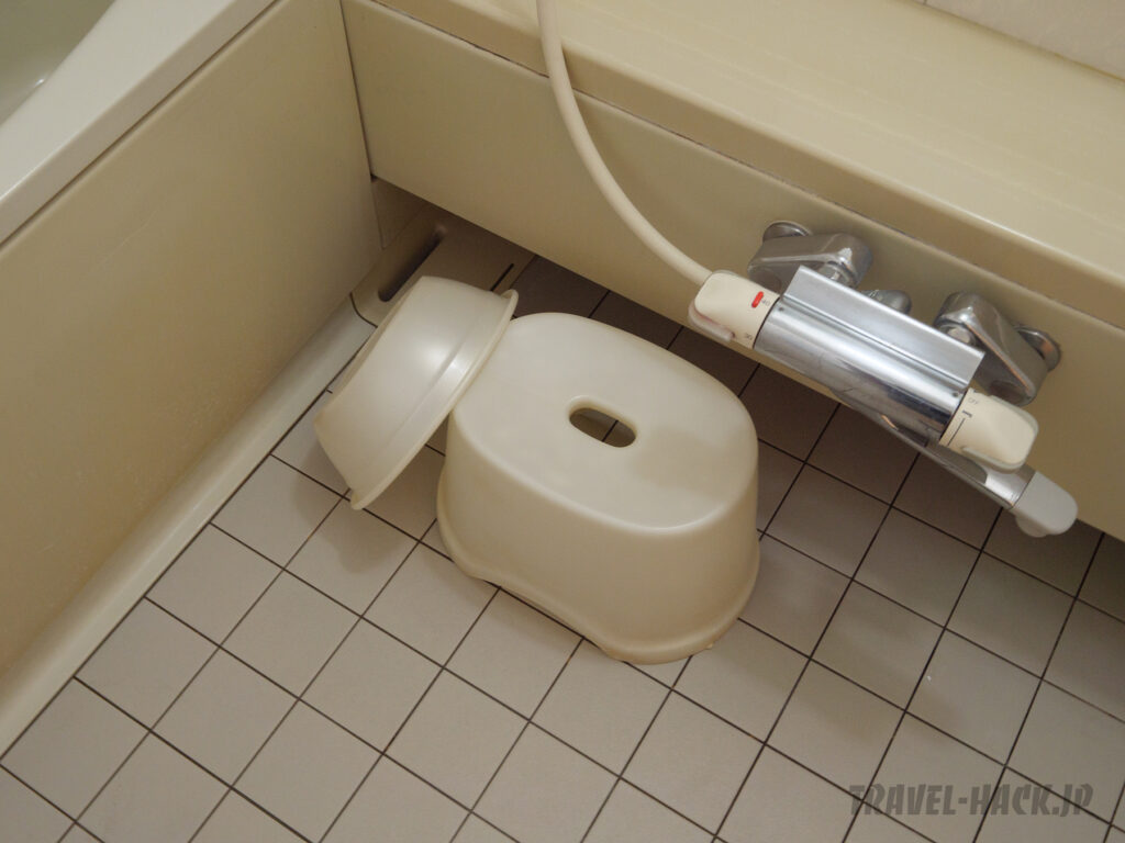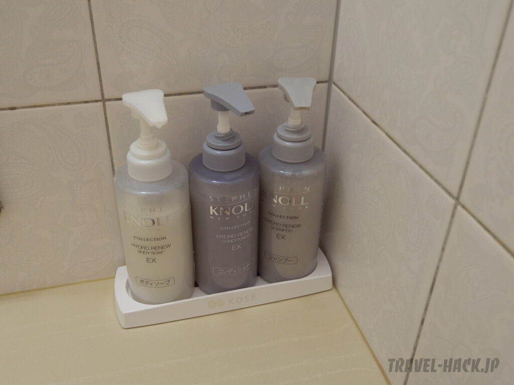 バスアメニティはSTEPHEN KNOLL(スティーブン ノル)を採用。桶や椅子もしっかりと揃っていました。