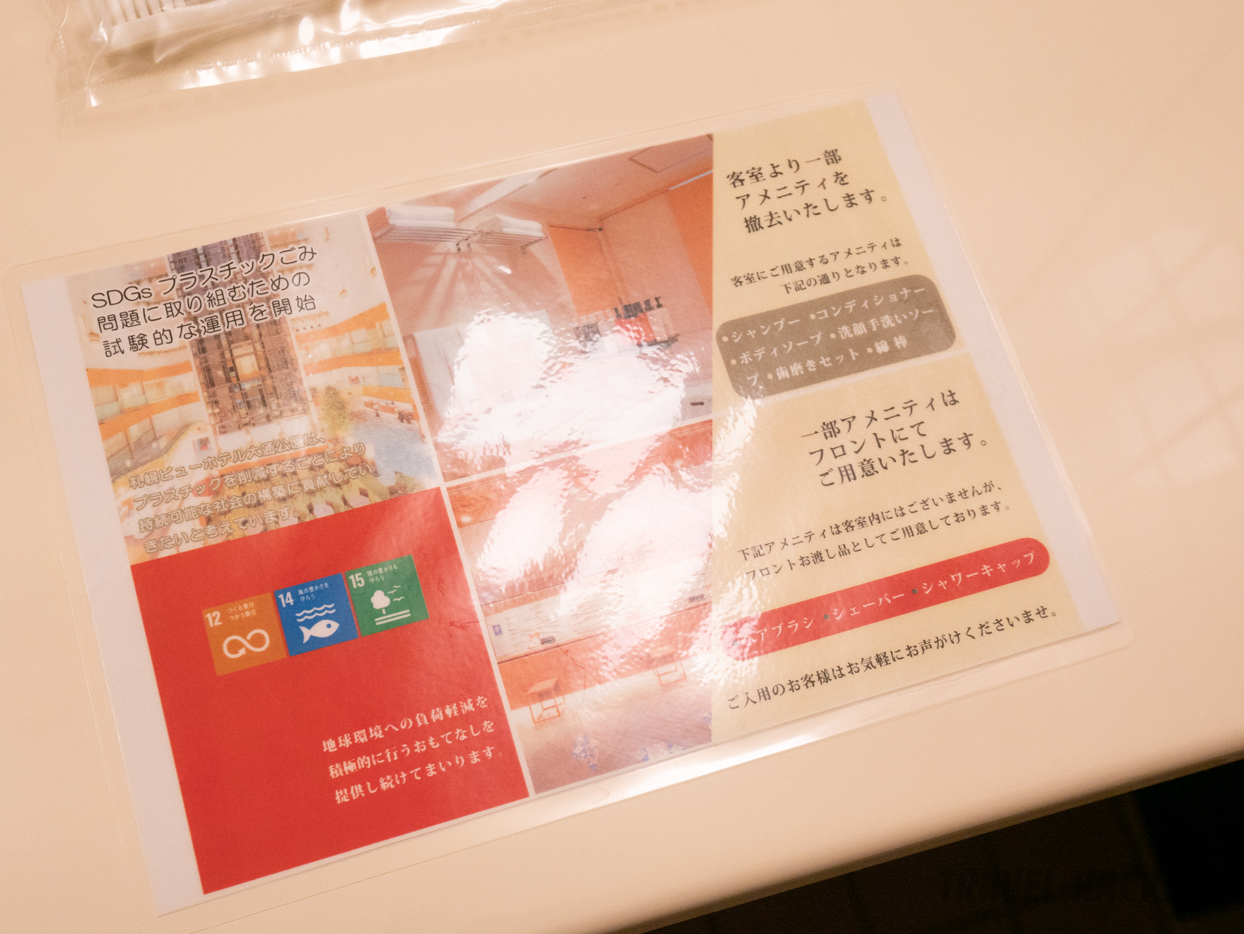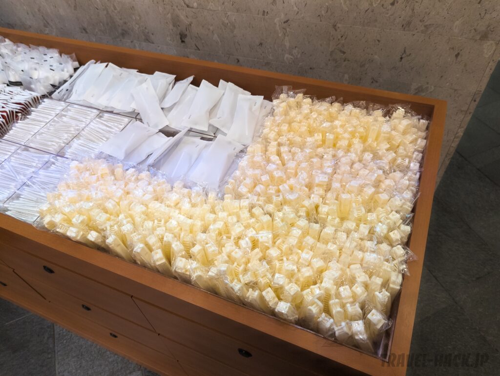 また、客室内にティーアメニティの設置はありません。ティーアメニティは1階のフロント前にあるアメニティコーナーから必要なものをピックアップするスタイルになりました。
