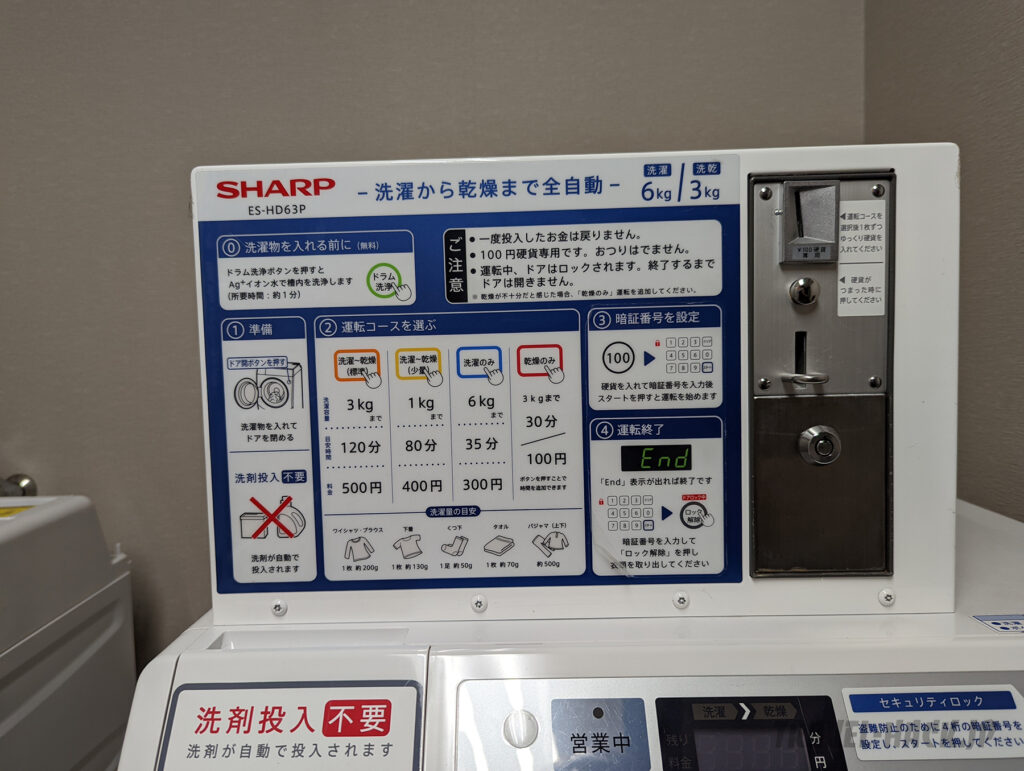 洗濯は3kg+乾燥120分で500円、1kg+80分で400円などとなっています。